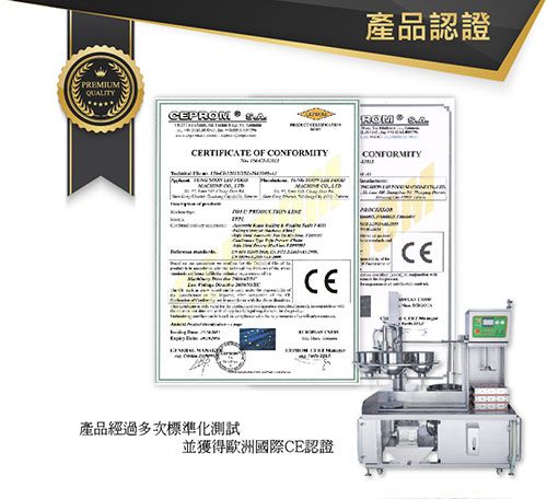 | 2007 | 豆腐機械設備通過CE認證,產線設備陸續申請並獲得通過。 |